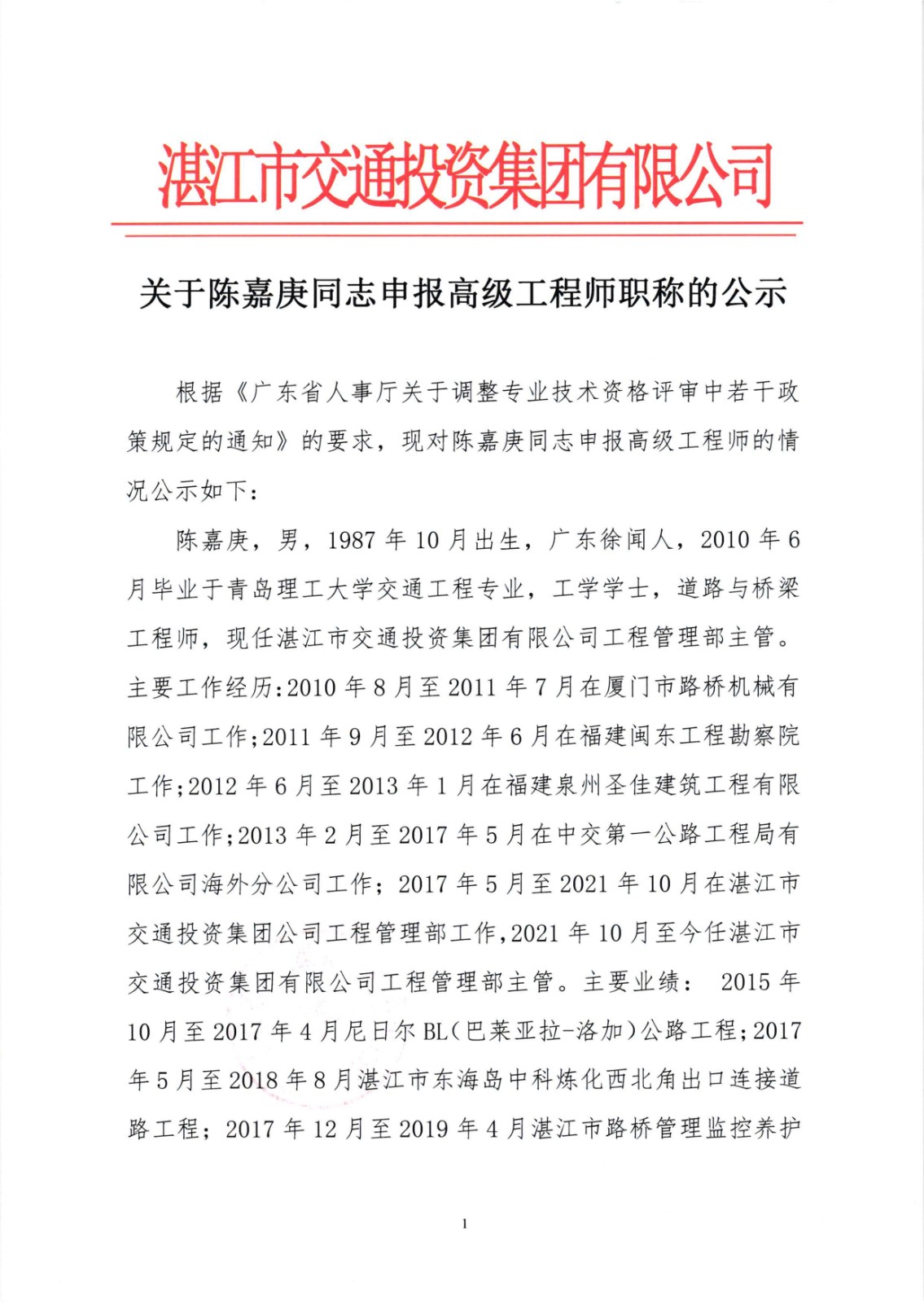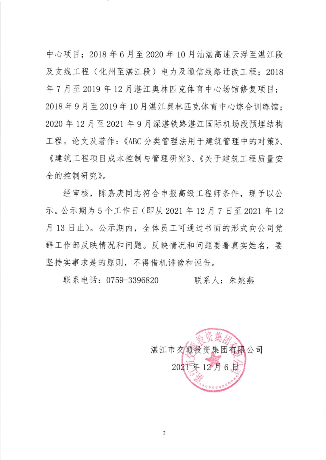 关于陈嘉庚同志申报高级AYX爱体育师职称的公示