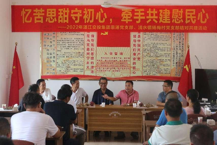 近日,为喜迎“二十大”,进一步巩固拓展党史学习教育、基层党员教育和助力乡村振兴,持续推动“我为群众办实事”工作走深走实,惠湛党支部组织支部全体党员和预备党员前往吴川市浅水镇与驻点村杨梅村委会党支部开展“携手共建助力乡村振兴”主题党日活动。